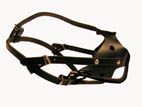Harnais de soutien, en cuir noir, avec boucles et sangles ajustables.
